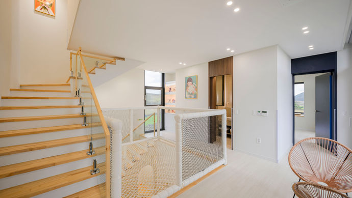 2층 공간으로 패밀리룸1(윈도우 시트), 복층룸1, 그물망해먹, 욕실1, 야외테라스로 구성되어 있습니다.