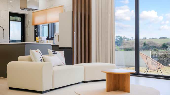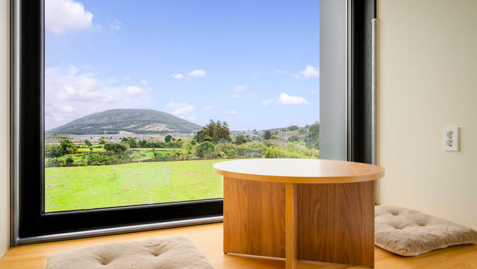 2층에는 제주의 아름다운 오름뷰를 감상할 수 있는 윈도우 시트가 있는 패밀리룸이 마련되어 있어 아늑한 휴식을 취할 수 있습니다.